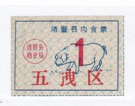 浙江省绍兴市诸暨市五洩区肉食票 非粮票 小猪图案 少见