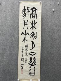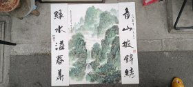 刘江鸿中堂画 山水画,对联一对。刘江鸿曾任《太湖》杂志编辑,无锡书协秘书长,副主席,无锡文联副主席,江苏省书法家协会会员。建国初期南艺毕业,善书画与篆刻,写作等。“海安博物馆”藏有刘江鸿先生书法。
