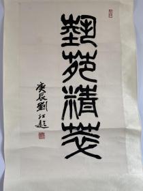 当代社会名家学界精英手札邮品墨迹题词书法大观珍贵文献资料研究收藏-西泠印社执行社长中国印学博物馆馆长中书协理事-国美书法系创始人之一著名书法篆刻家刘江篆书同心协力共创未来-纯手绘保真精品出售