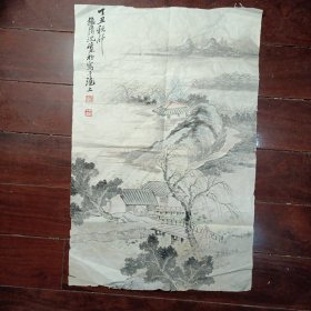 H 089 海上著名书画家 沈觉初 山水条幅 沈觉初,1914年出生于浙江德清,是中国近代著名的画家和竹刻艺术家。他是沪上大名鼎鼎的画家,与刘海粟、王个簃、谢稚柳、唐云、来楚生、单晓天、方去疾等齐名,合称为海上书画篆刻八大家之一。