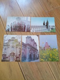 明信片5枚合售:中国天主教沈阳市天主堂,上海市青浦县泰来桥天主堂,广东省揭西河婆天主堂内景,北京宣武门圣田无染原罪圣堂,西安天主堂