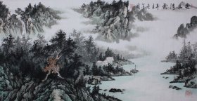 周金阊作品 张大千第三代 可合影 【大千画派第三代传人】 ——当代著名画家周金阊先生创作精品 《清江碧水云漫枝头》 尺寸:180cmX96cm 十五平尺 附带收藏证书 视频合影 画集