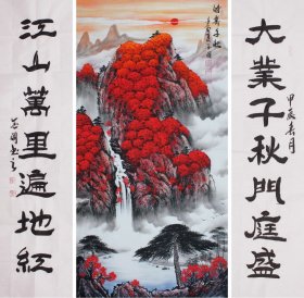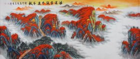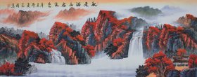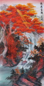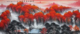 周金阊作品 张大千第三代 可合影 【大千画派第三代传人】 ——当代著名画家周金阊先生创作精品 《秋来满山尽佳色》 尺寸:180cmX70cm 十平尺 附带收藏证书 视频合影 画集