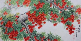 周金阊作品 张大千第三代 可合影 【大千画派第三代传人】 ——当代著名画家周金阊先生工笔精品 《红利图》 尺寸:137cmX70cm 八平尺 附带收藏证书 作者合影 画集 合影视频 专用收藏锦盒