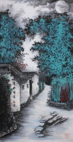 周金阊作品 张大千第三代 可合影 当代著名画家周金阊先生创作精品 《小桥流水山里人家》 尺寸:136cmX68cm 8平尺 附带收藏证书 视频合影 画集
