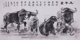 周金阊作品 张大千第三代 可合影 【大千画派第三代传人】 ——当代著名画家周金阊先生创作精品 《五牛图》 尺寸:137cmX70cm 八平尺 附带收藏证书 作者合影 画集 合影视频