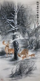 周金阊作品 张大千第三代 可合影 【大千画派第三代传人】 ——当代著名画家周金阊先生工笔精品 《吉利图》 尺寸:137cmX70cm 八平尺 附带收藏证书 作者合影 画集 合影视频 专用收藏锦盒