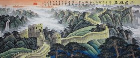 周金阊作品 张大千第三代 可合影 【大千画派第三代传人】 ——当代著名画家周金阊先生创作精品 《千里江山图》 尺寸:180cmX70cm 十平尺 附带收藏证书 视频合影 画集 小六尺长城