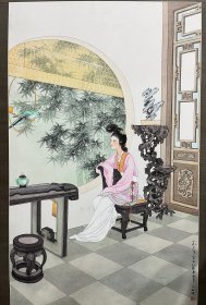 已故著名画家王叔晖早期工笔人物一幅