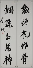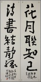 中国书法家协会会员 鲁大东精品行书对联《客去 睡余》 作品尺寸:69cm X 15cm X 2 作品材质:精绘熟宣纸 译文: 客去茶香留舌本 睡余书味在胸中
