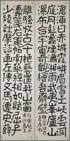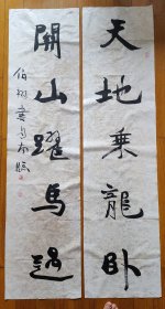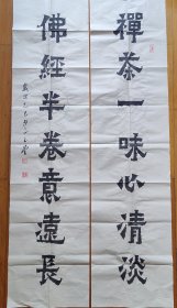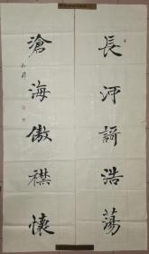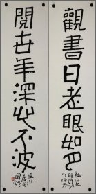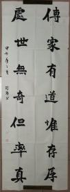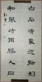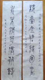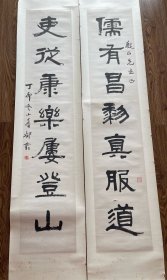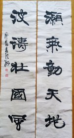 吉林省书法家协会会员,中国石油书法家协会会员,中国硬笔书协会员,石油四方印社、天津印社、长白印社、京东印社社员 穆怀明 隶书对联参展精品 【178×67厘米】