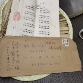 名人手札【吴丈蜀】( 当代著名学者、诗人、书法大家。中国书协理事,中国作协会员,中华诗词学会副会长,湖北省文史馆馆长,省诗词学会会长,《书法报》社社长,省书协副主席,四川泸州人) 1页带实寄封