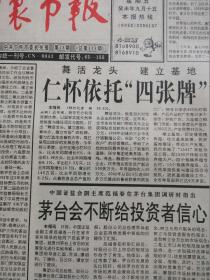 中国酒都--贵州省遵义市仁怀市委机关报 早期《仁怀市报》黔酒文化权威报道 中国白酒交易市场,五月28日隆重开盘,投资置业首选中国白酒交易市场的六大理由,美酒河醉翁之意不在酒