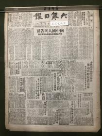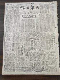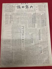 原版老报纸【大众日报】1949年大众日报:向中国人民告别。全国体育总会筹备会通过章程圆满闭幕。冯文彬当选筹备委员会主任。王新元赴京。济南茶叶行店员工会筹备会成立。