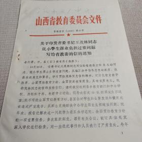 文件(1992年)关于印发省委书记王茂林同志就学生课业负担过重问题写给省教委的信的通知 16开