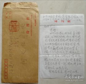 【同一来源】中华诗词学会副会长、《诗刊》常务副主编、《中华诗词》副主编,著名作家、诗人丁国成信札及实寄封(诗刊笺)