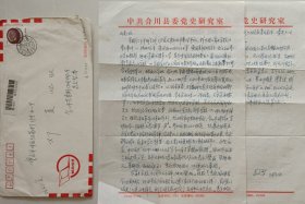 【邓菱旧藏】《红岩》原型革命人物,地下党员,陶行知的弟子,合川育才小学校友,原重庆合川县副县长易复智致重庆红岩革命纪念馆长邓菱信札及实寄封(研究室笺)