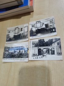重庆红色圣地系列老照片四张 /背面带毛主席头像和红岩革命纪念馆参观留念纪念印章( 毛主席在重庆谈判时住过的屋子、办事处、红岩全景、红岩纪念馆大门(4张)