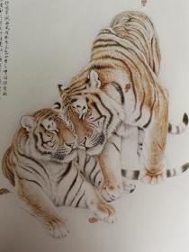 旧藏名家长卷群虎图,张善子,也称张善孖(1882年—1940年),名泽,字善,一作善子,又作善之,号虎痴,男,四川内江人,现代名画家,张大千的二哥,画虎大师。