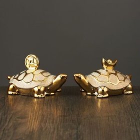 陶瓷金钱龟摆件一对