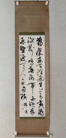海派名家,韩煜书法102x32.5cm,原装裱立轴,(保真书画)。韩煜,1945年3月生于上海。中国书法家协会会员,上海书法家协会会员,上海书法教育研究会理事。上海交通大学书画科技协会艺术顾问。中国江南大学艺术顾问。余姚市书画院顾问。中华文化海外联合体副理事长。他七岁临池习字,师从国学大师郭绍虞教授,学书50余载,以草书、启创“墨韵书法”闻名。