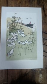 五六十年代朵云轩木板水印画 淀畔