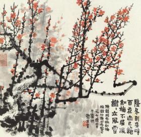 2340 赖少其 红梅图 纸本印刷图片 画页 画芯尺寸 16.8X17厘米