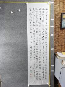 B14536号书法 李白 古风·其十九 139×69cm 作者:张成斌 安徽宿州市人 1948年10月15日生 大学 经济师 历任宿州市信息化协会理事长 宿州市孝文化研究会副主席 宿州市孝贤书画院顾问 安徽省江淮诗书画研究院会员 宿州市书法家协会会员 西上莲花山,迢迢见明星。素手把芙蓉,虚步蹑太清。霓裳曳广带,飘拂升天行。邀我登云台,高揖卫叔卿。恍恍与之去,驾鸿凌紫冥。俯视洛阳川,茫茫走胡兵。