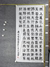 B13710号书法 白居易 赋得古原草送别 180×48cm 作者:张立鸿 1953年生 山东省淄博人 现为中国老年书画学会会员 山东省淄博市老年书法学会会员 《中国书画导报》签约书画家 第七届中国重阳书画展 第一 二 三届全国中老年创新书画大赛获奖 离离原上草,一岁一枯荣。 野火烧不尽,春风吹又生。 远芳侵古道,晴翠接荒城。 又送王孙去,萋萋满别情。