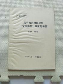 第二届近百年中日关系史国际研讨会论文:关于南京国民政府“安内攘外”政策的评价(油印本)