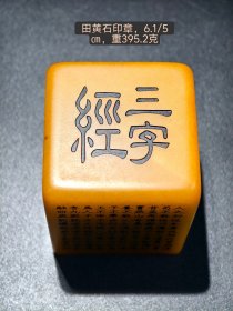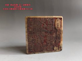 旧藏寿山石雕,弘一法师篆刻经文印章,长宽8.2厘米、厚4.2厘米,重741.3克。石质温润,篆刻古朴,经文与造像交融,藏岁月沉淀之韵,尽显文房雅趣与佛法意蕴 。