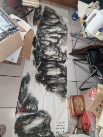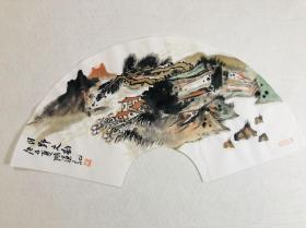 著名山水画家,中美协会员,张谦老师精品,山水扇面【山野之韵】尺寸50*25厘米,终身保真,有合影视频,放心收藏! 张老师山水作品,市场价每平尺6000元!且藏且珍惜!