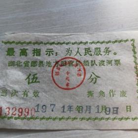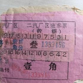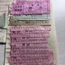 十堰市红卫厂厂区汽车票7张,二汽厂区班车票3张,毛主席语录二汽厂区班车客票一张,十堰市(最高指示,毛主席语录)公共汽车公司汽车票20张,最高指示郧县地方国营轮船对渡河票两张,合售