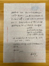 袁韵宜(著名艺术家庞薰琹夫人·戏曲编剧·作品《穆桂英挂帅》(梅兰芳版)·参与改编《青春之歌》·《洪湖赤卫队》等现代京剧·著有《庞薰琹工艺美术文集》·《庞薰琹传》等)致颜振奋(戏剧评论家·中国剧协原书记处书记)墨迹信札一通1页·30·10·WXYS·8