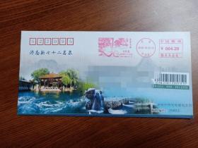 集邮~2016年11月1日 ~山东济南趵突泉邮电支局~ 济南新七十二名泉 之 黑虎泉 ~邮资机风景戳宣传戳 ~任怀平先生设计~首启日实寄封 ~美术封
