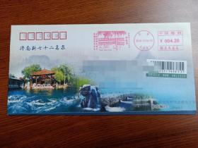 集邮 ~实寄封 ~邮资机戳 ~邮戳 ~风景戳~ 宣传戳: 2016年9月11日 山东济南趵突泉邮电支局 济南新七十二名泉 之 漱玉泉 邮资机风景宣传戳 首启日实寄封 美术封 (任怀平先生邮戳设计)