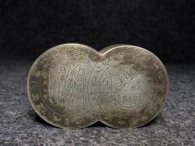 白铜墨盒 白铜又称为银白铜,常用作墨盒面和四边的材料。收藏爱好者十分钟爱白铜墨盒,因为白铜墨盒耐空气腐蚀,韵味十足,质地较为细腻,有易于篆刻等优点。 尺寸,长宽厚9.9/6/2.8厘米,重227克