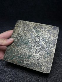 白铜墨盒 白铜又称为银白铜,常用作墨盒面和四边的材料。收藏爱好者十分钟爱白铜墨盒,因为白铜墨盒耐空气腐蚀,韵味十足,质地较为细腻,有易于篆刻等优点。 尺寸:长宽厚11/11/4厘米,重528克