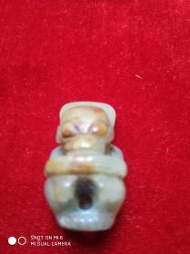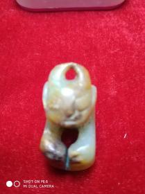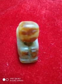 省级文物公司库存处理 原始部落粗雕玉器 人 俑 一枚,存于翠竹苑花梨木柜台