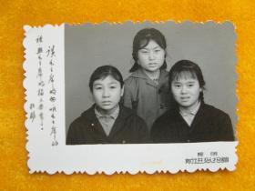 一般合影照第191-《昆明艺术摄影(长辫乌发穿立口领结衣微笑美女姐妹合影)》约3-4寸黑色老照片、老相片、老像片、老资料 约1960-1980年代左右1张