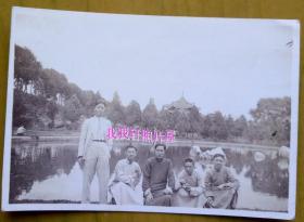 民国老照片:民国抗战时期—云南昆明—圆通山公园,人造椭圆池旁长衫男士等合影。1940年6月21日,有背题。——备注:圆通公园,又称“圆通山公园”,今称“昆明动物园”、“圆通山动物园”。【陌上花开系列】