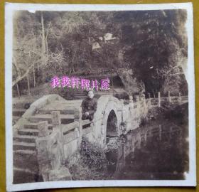民国老照片:抗战时期(1941年),查奕中(婺源人)旅滇时,摄于昆明黑龙潭(原为南明忠义之士薛尔望阖家殉国之所),背面字题。【韶华胜极——民国寓居昆明——徽州婺源人(今上饶婺源)——查奕中家庭系列】