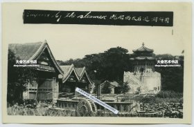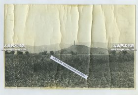 民国北京海淀区颐和园昆明湖西侧,向西眺望玉泉山玉峰塔大幅银盐老照片,拍摄于颐和园西侧宫墙之内,当时这里种植了大量的玉米。25.6X16.5厘米。