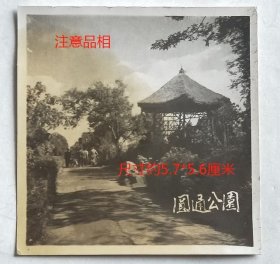 老照片:云南昆明—“圆通公园”(又称“圆通山公园”,今称“昆明动物园”、“圆通山动物园”),可见一草亭。1959年3月9日,辉(赠)树海。有背题。【陌上花开系列】