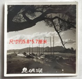 老照片:云南昆明—“昆明湖”(也称“滇池”、“昆明池”、“滇南泽”、“滇海”),停泊着许多帆船。1959年3月9日,辉(赠)树海。有背题。【陌上花开系列】