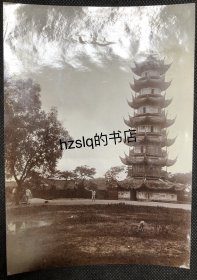 【照片珍藏】清末上海龙华塔近景及周边场景,可见塔座周围细节以及多处人物活动景象。老照片方位少见,尺寸较大、甚为难得(16.5x11.5cm)