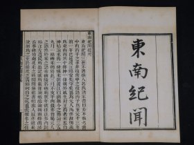 清末白纸影印嘉庆张海鹏刻{墨海金壶}本【东南纪闻】三卷一册全,《东南纪闻》是佚名创作的中国史类书籍。是一部追记两宋时事的文言笔记体史籍,内容涵盖南宋军政要闻、士大夫轶事及社会风俗。