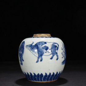 清末青花五牛图纹罐