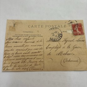 清末 信札 信函 手写 书信 实寄信函,明信片式彩色照片【1909年】【 有邮票 加盖印章 珍贵 稀少】 反面是手写内容及手稿、签名等,质量非常好。彩色照片实寄编号A1984