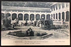 【影像资料】清末民初贵州贵阳神学院的楼房及周边场景明信片,可见内庭水池等。Missons-Etrangère de Paris法国巴黎外方传道会发行,品质颇佳